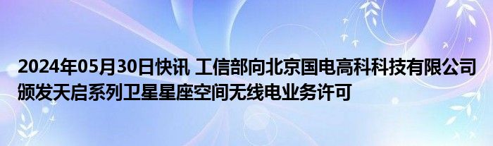 2024年05月30日快讯 工信部向北京国电高科科技有限公司颁发天启系列卫星星座空间无线电业务许可