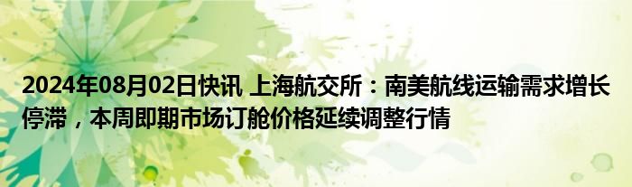 2024年08月02日快讯 上海航交所:南美航线运输需求增长停滞,本周即期市场订舱价格延续调整行情
