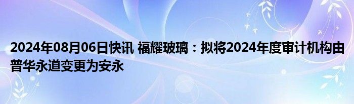 2024年08月06日快讯 福耀玻璃:拟将2024年度审计机构由普华永道变更为安永
