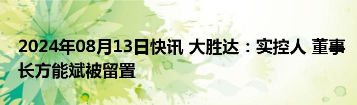 2024年08月13日快讯 大胜达:实控人 董事长方能斌被留置