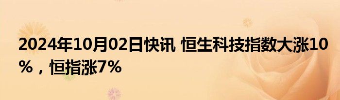 2024年10月02日快讯 恒生科技指数大涨10%,恒指涨7%